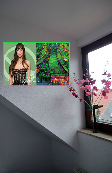 DAKOTA JOHNSON Souvenir. 70x50 cm. Blickfang! Geschenkidee. Kunstdruck. Wanddeko, Wanddeko. Unikat.